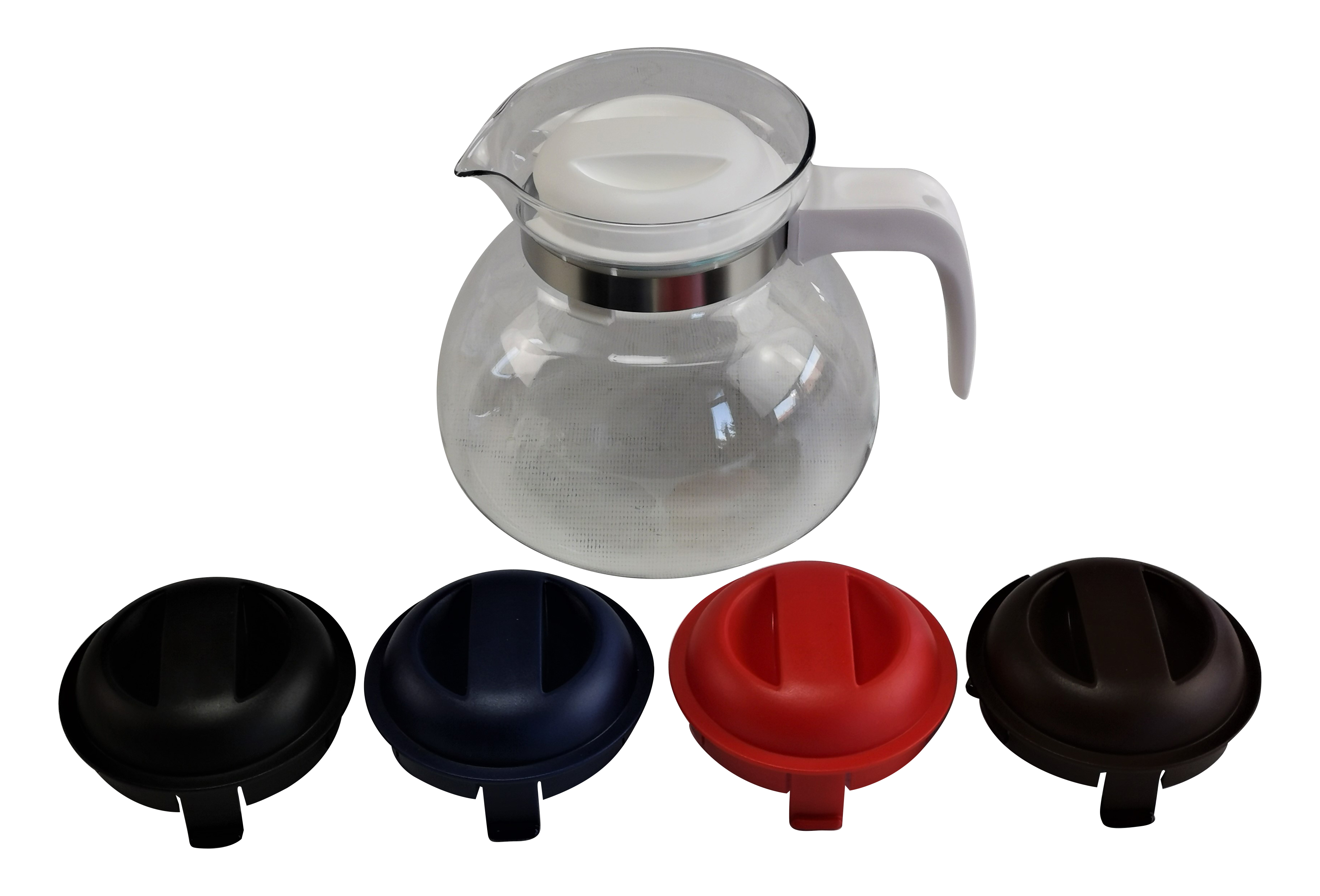 • Die Kanne wird ab Werk mit 5 Deckel- und Grifffarben angebotent: grau, blau, schwarz, weiß oder rot