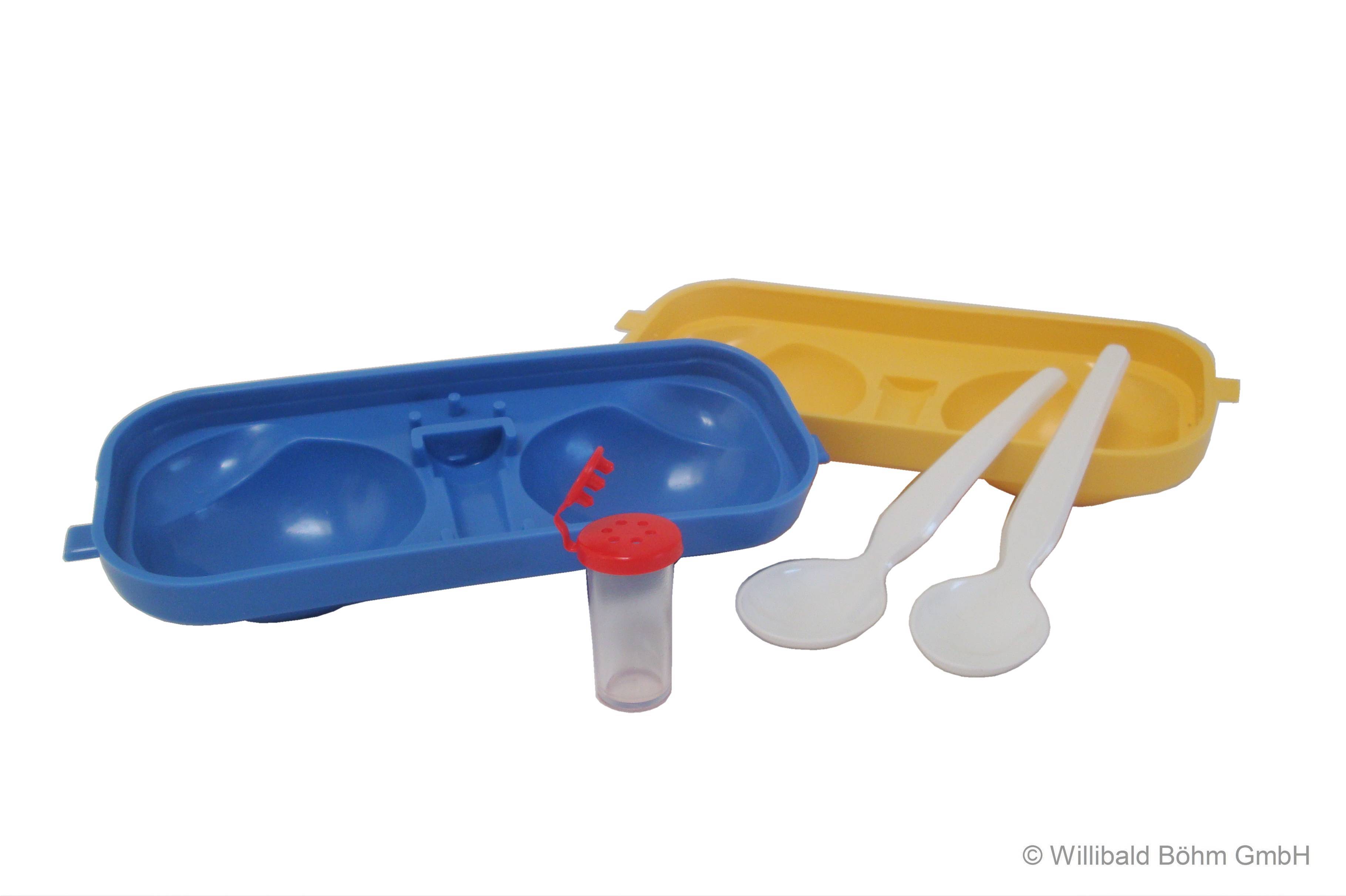 • Unterteil blau,Oberteil gelb, Löffel weiß