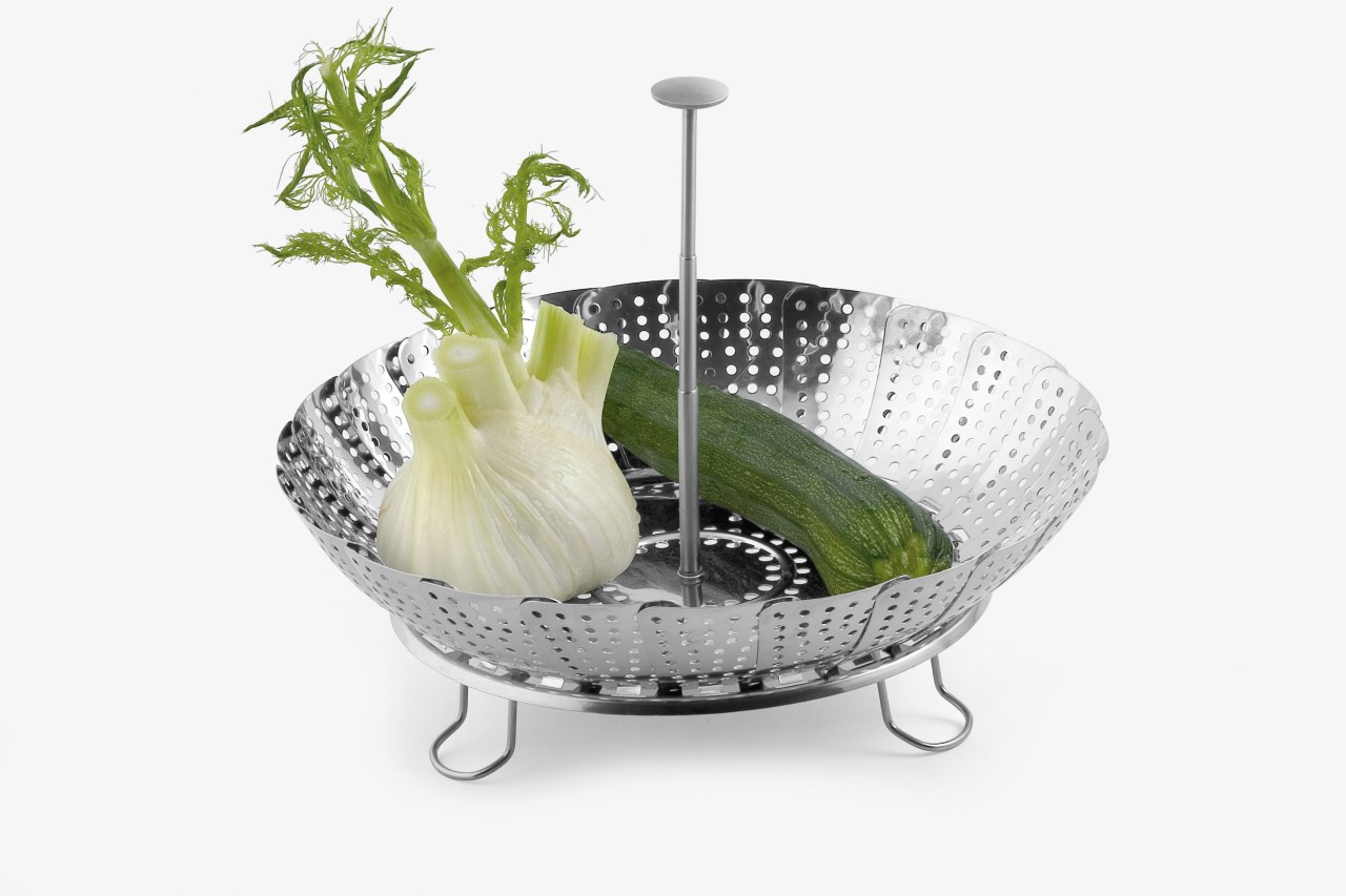• klappbare hohe Füße sorgen dafür, daß das Gargut nicht mit dem Wasser in Berührung kommt