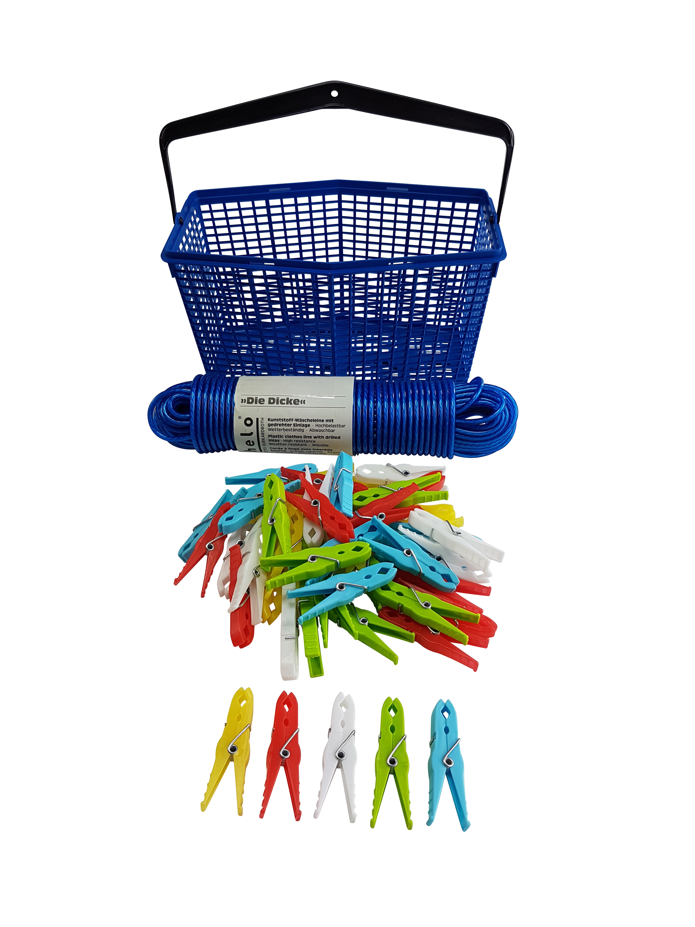 Klammerkorb + Helo Wäscheleine 30m +